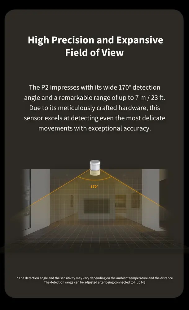 De Aqara licht en bewegingsensor P2 is een batterij gevoede Thread & Matter sensor voor het detecteren van beweging en meten van licht intensiteit. Het biedt gebruikers de mogelijkheid om de sensor direct te verbinden met een Thread Border-router van andere fabrikanten. De sensor heeft een detectiehoek van 170°