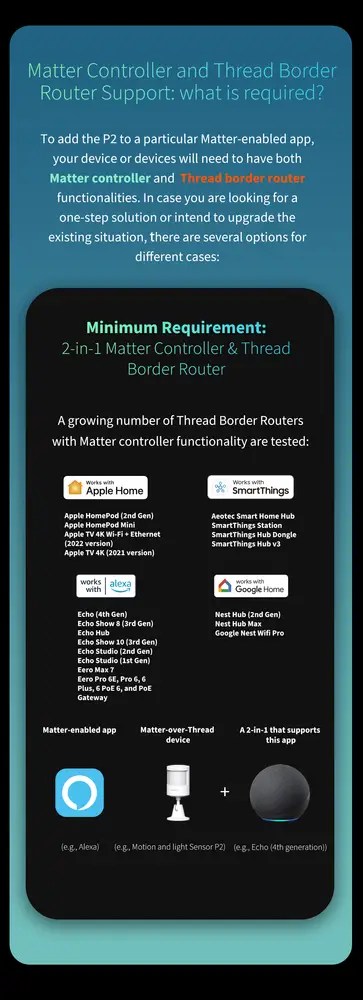 Deze sensor werkt alleen met een thread border router. De P2 sensor is niet compatible met de bestaande Aqara hubs en de Aqara App.